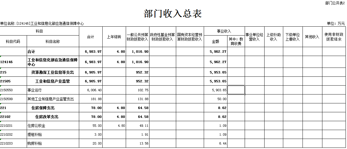 二、关于工业和信息化部应急通信保障中心2022年收入总表的说明