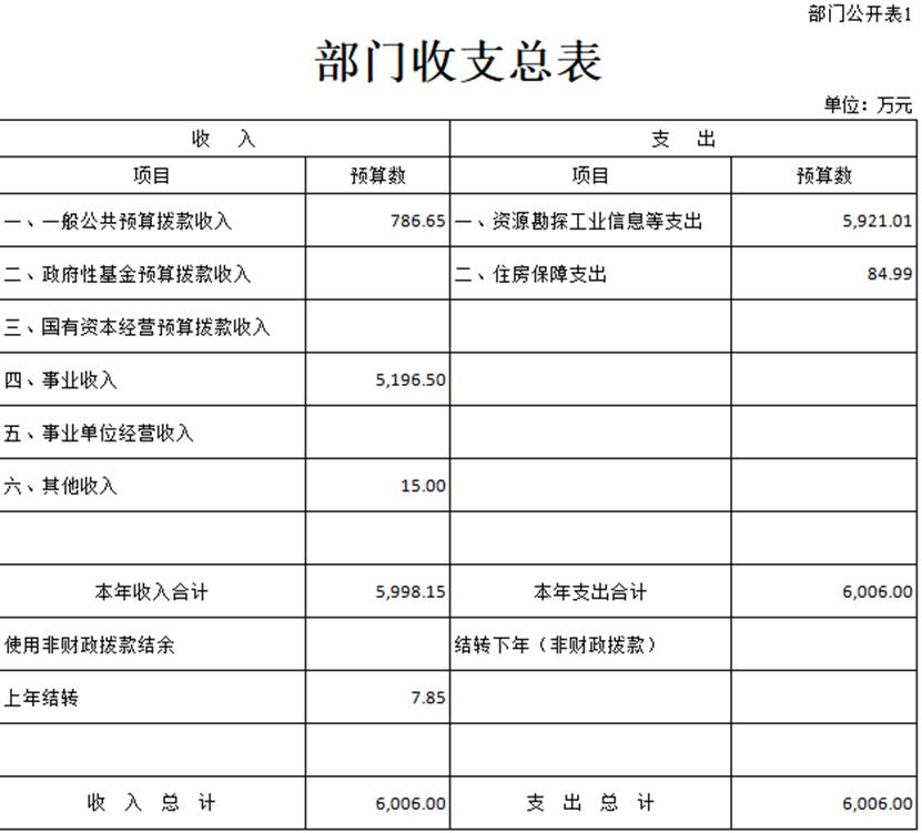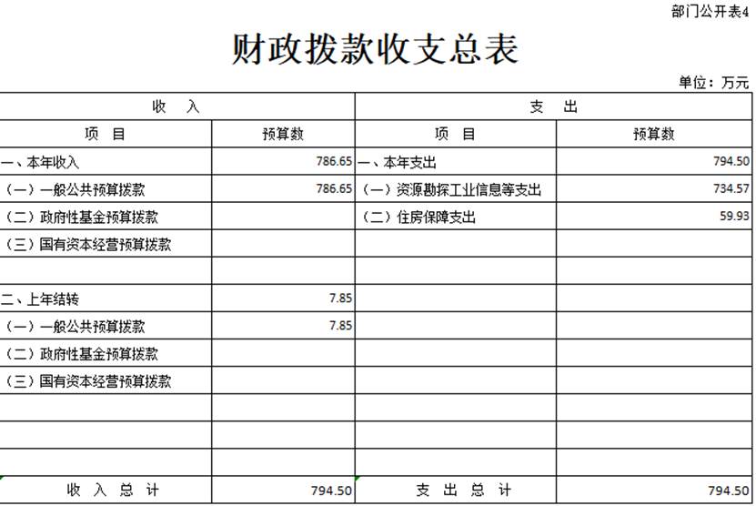 一、部门收支总表