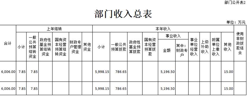 二、部门收入总表