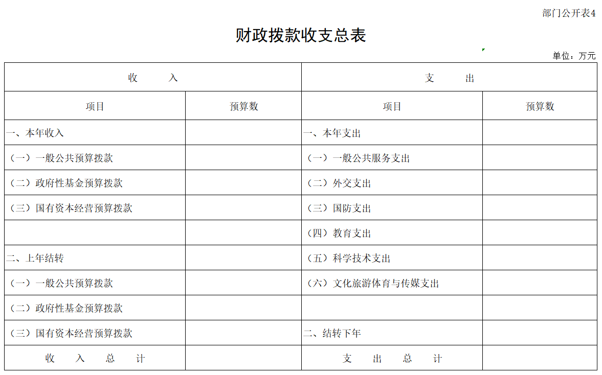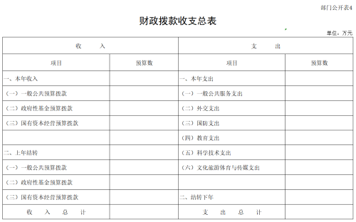 四、财政拨款收支总表