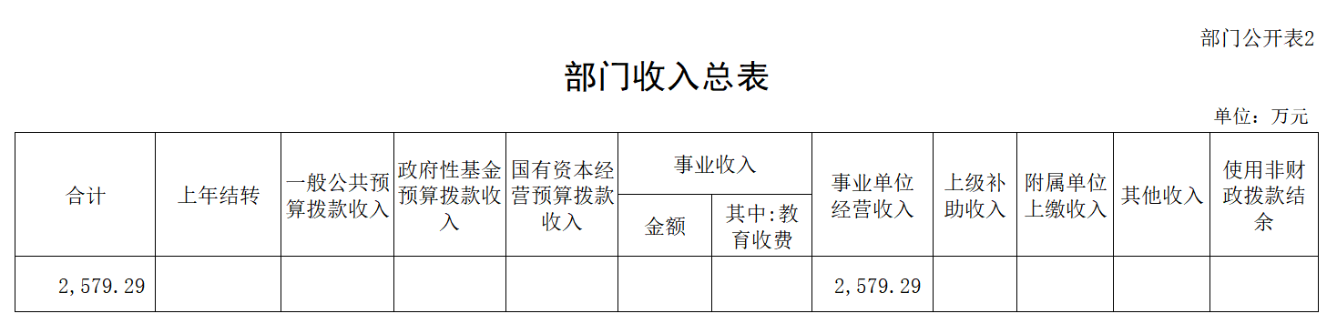 二、部门收入总表