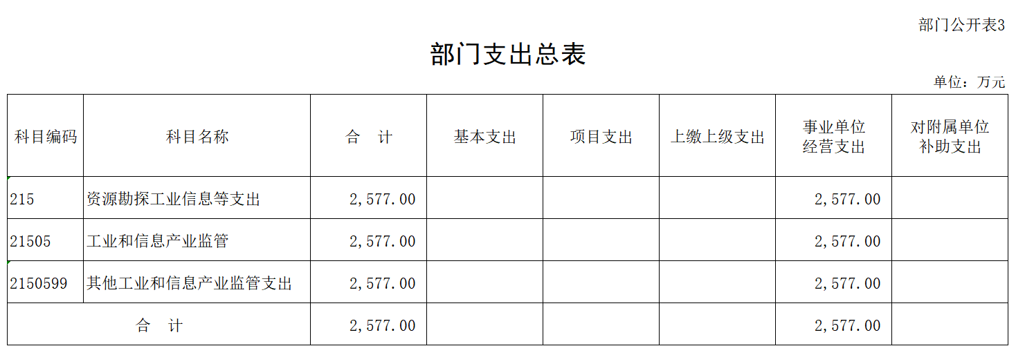 工业和信息化部通信清算中心2024年支出预算2,577.00万元,全部为基本支出。