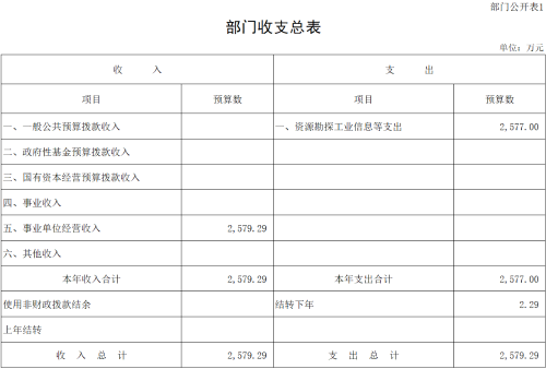 一、部门收支总表