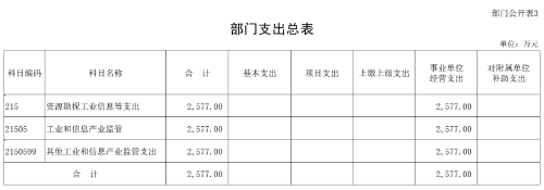 (一)资源勘探工业信息等(类)工业和信息产业监管支出(款):指工业和信息化部用于保障机构运行、开展工业和信息产业监管工作的支出。